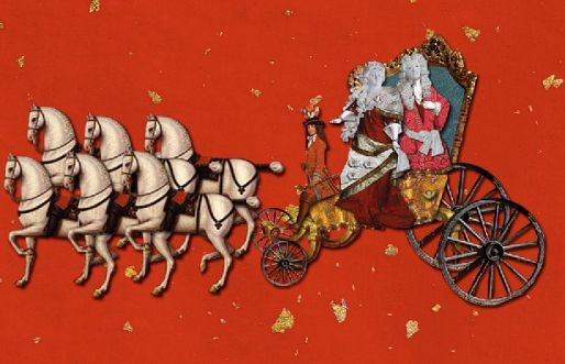 Brudeparret har været til skue, først til hest eller i en statelig vogn og derefter på tronen, mens gæster af høj og lav byrd højtideligt blev modtaget.