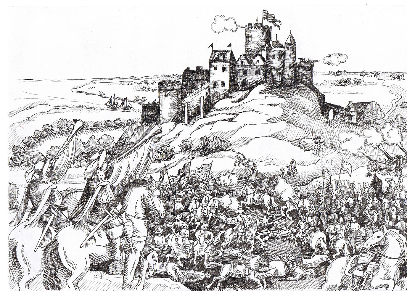 Om bryllupstoget har været med flere vogne, om Benedicte Brockdorff og Jørgen Skeel havde et større følge af vogne med rødklædte forriddere, om deres vogn var en guldkaret, trukket af otte hvide heste, ved vi ikke.