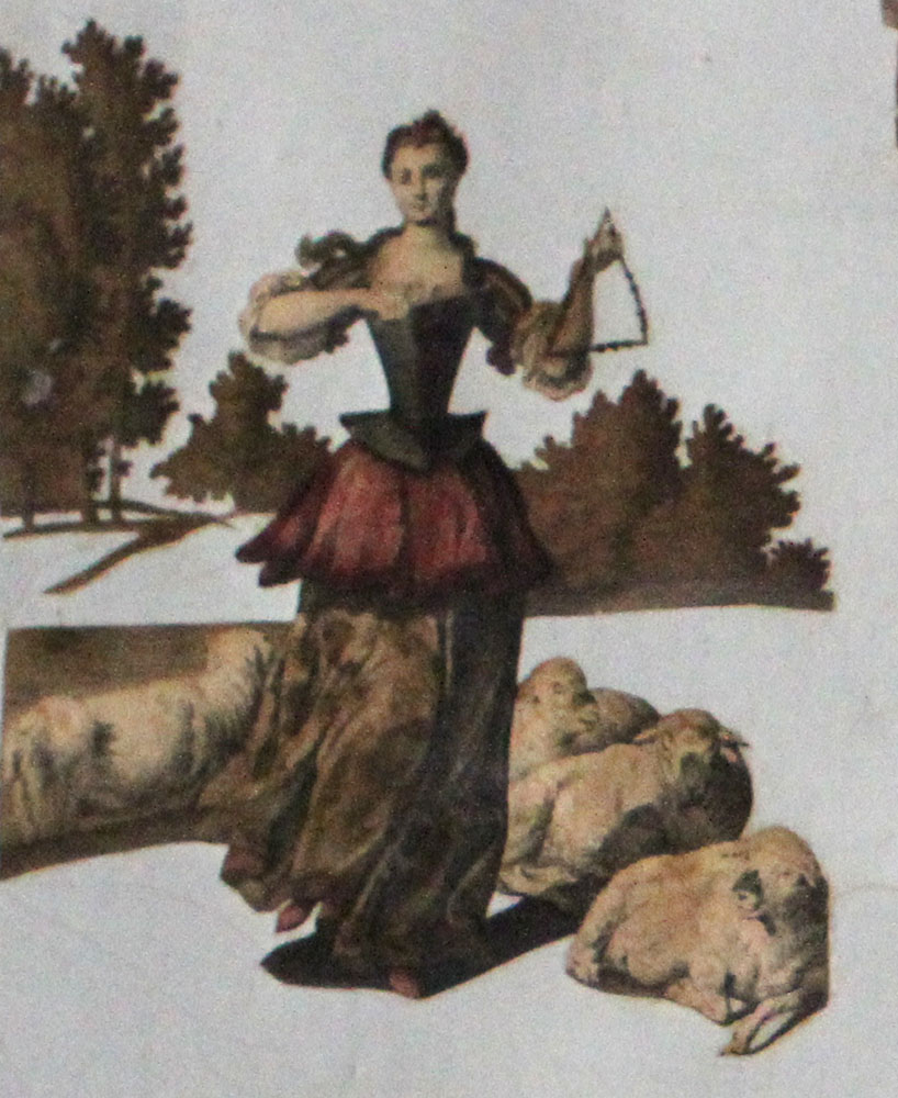 Glansbillederne blev indkøbt fra Tyskland som farvelagte kobberstik i hefter. Måske er det grevinden selv, der har klippet dem ud og sat dem op med melklister.