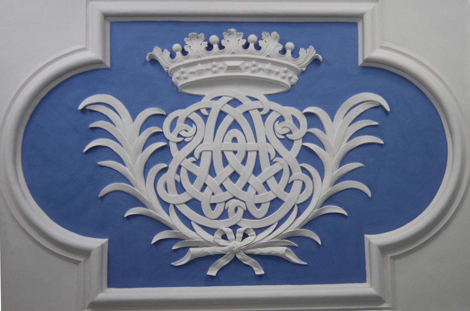 På loftet i kammeret var parrets monogram også prydet af en grevekrone. Christen Scheel og Augusta Winterfeldt var nu greve og grevinde af Scheel, og de titulerede hinanden således.