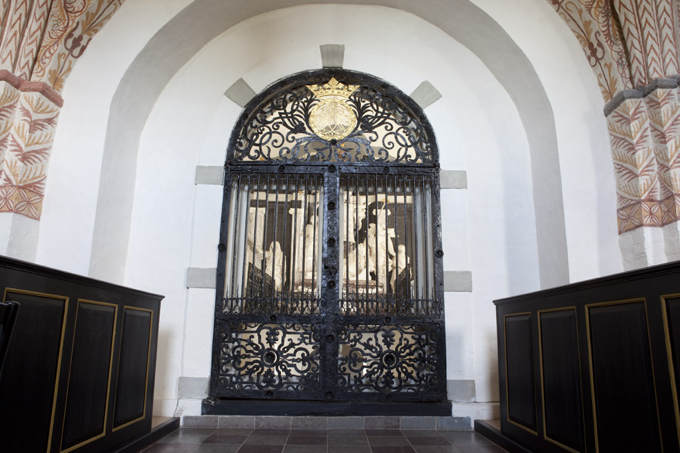 Efter Jørgen Skeels død kredsede alle om Benedicte Brockdorff; den 17-årige enke, som Jørgen Skeel efterlod med ansvaret for herlighederne. Som svar på tiltale rejste hun et gravmæle i marmor over sin faldne ridder, Jørgen Skeel, der ligger i rustning med kastet ridderkårde. Over ham er billedet af den frodige Benedicte Brockdorff med højt hår og krøller, der slynger sig over brystet.