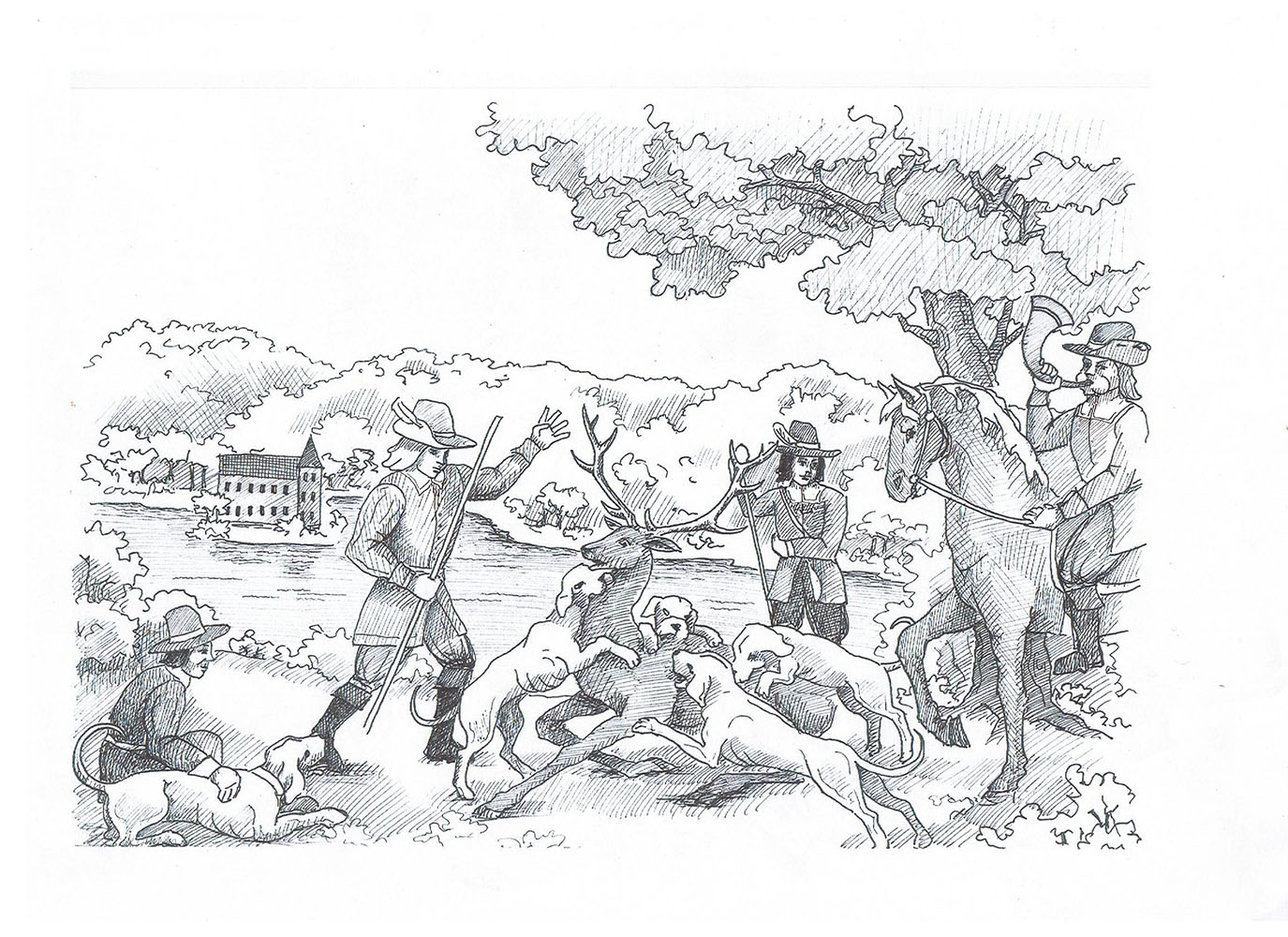 Når de voksne var på jagt, løb de med hundene gennem skoven. Når hundene havde nedlagt byttet, blev dets strube skåret over. Først når drengene var blevet rigtig gode til at løbe med hundene, måtte de begynde at ride.