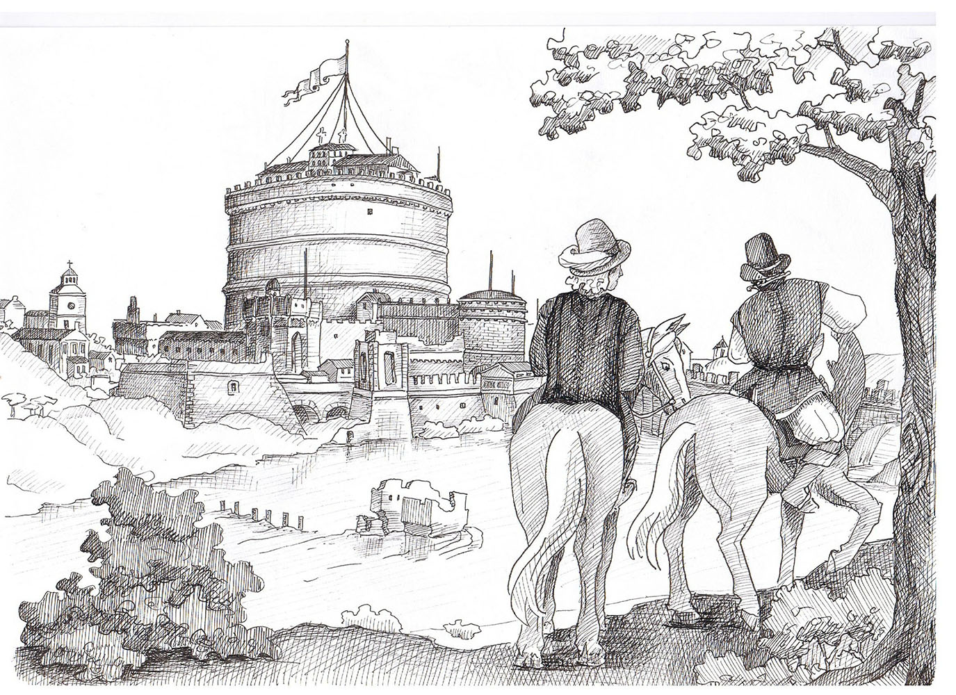 Byerne i Italien var bygget som fæstninger, og Jørgen og Otte skulle studere dem. Brødrene be-søgte alle de vigtigste fæstningsbyer på deres vej til Napoli. Her havde kongen af Spanien den største og prægtigste fæstning som værn mod både franskmænd og tyrkere.