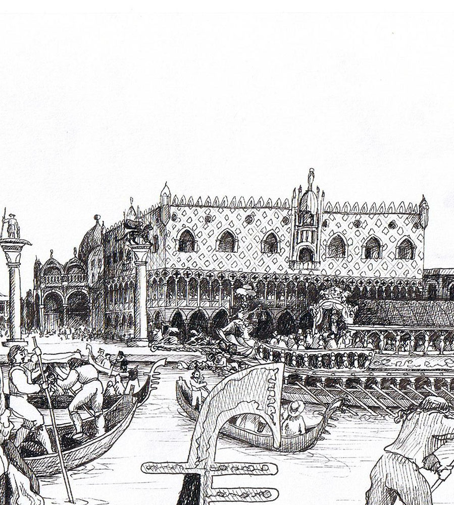 Venedigs hersker, dogen, sejlede ud på Canale Grande i sin guldbelagte båd. Her kastede han en guldring i havet for at besegle pagten mellem byen og det hav, der gennem handelsskibene gav Venedig sin overdådige rigdom.
