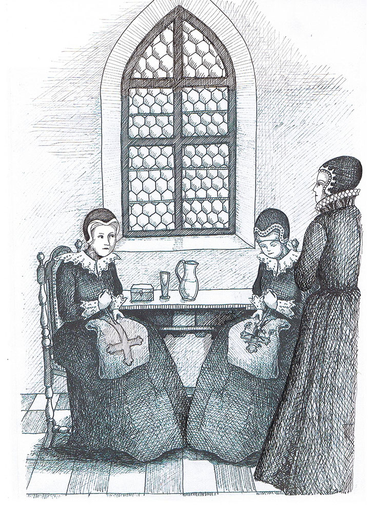 På hesteryg red de med deres fader i hele lenet. Fattige og syge gav de penge og gaver, og de holdt øje med, at gårdene og vejene blev passet. Der skulle også sørges for, at møllerne kunne dreje, og at kræmmerne betalte deres skat.